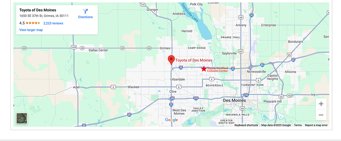 Welcome to Toyota of Des Moines, your Local Toyota Dealer Serving Grimes, Des Moines, West Des Moines, Waukee and Urbandale.